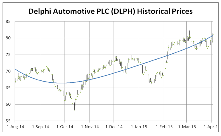 Another bright spot in the D20 Index this week was the auto parts maker, Delphi Automotive (DLPH). It announced this week the completion of its 3,400 mile trip from San Francisco to New York City with 99 percent of those miles covered in fully autonomous mode. The stock rose $3.69, or 4.8 percent, to end the week at $81.18.
